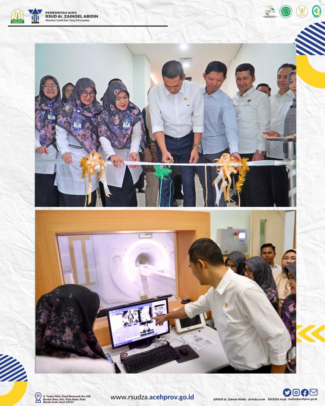 Banda Aceh, Rabu, 8 Oktober 2025 – Rumah Sakit Umum Daerah dr. Zainoel Abidin (RSUDZA) Banda Aceh secara resmi menerima dan mulai mengoperasikan alat medis Magnetic Resonance Imaging (MRI) 1,5 Tesla yang kini ditempatkan di Gedung Onkologi. Peresmian dilakukan secara langsung oleh Sekretaris Daerah Aceh, M. Nasir, S.IP., MPA, setelah prosesi serah terima yang dihadiri oleh Plh. Direktur RSUDZA, dr. Arifatul Khoirida, MPH, FISQua, jajaran Kementerian Kesehatan RI, serta Tim PMU SHIREN.