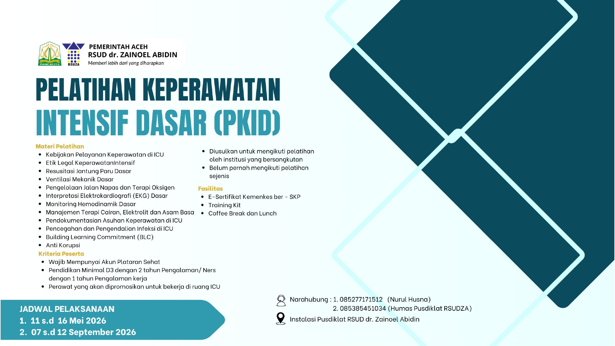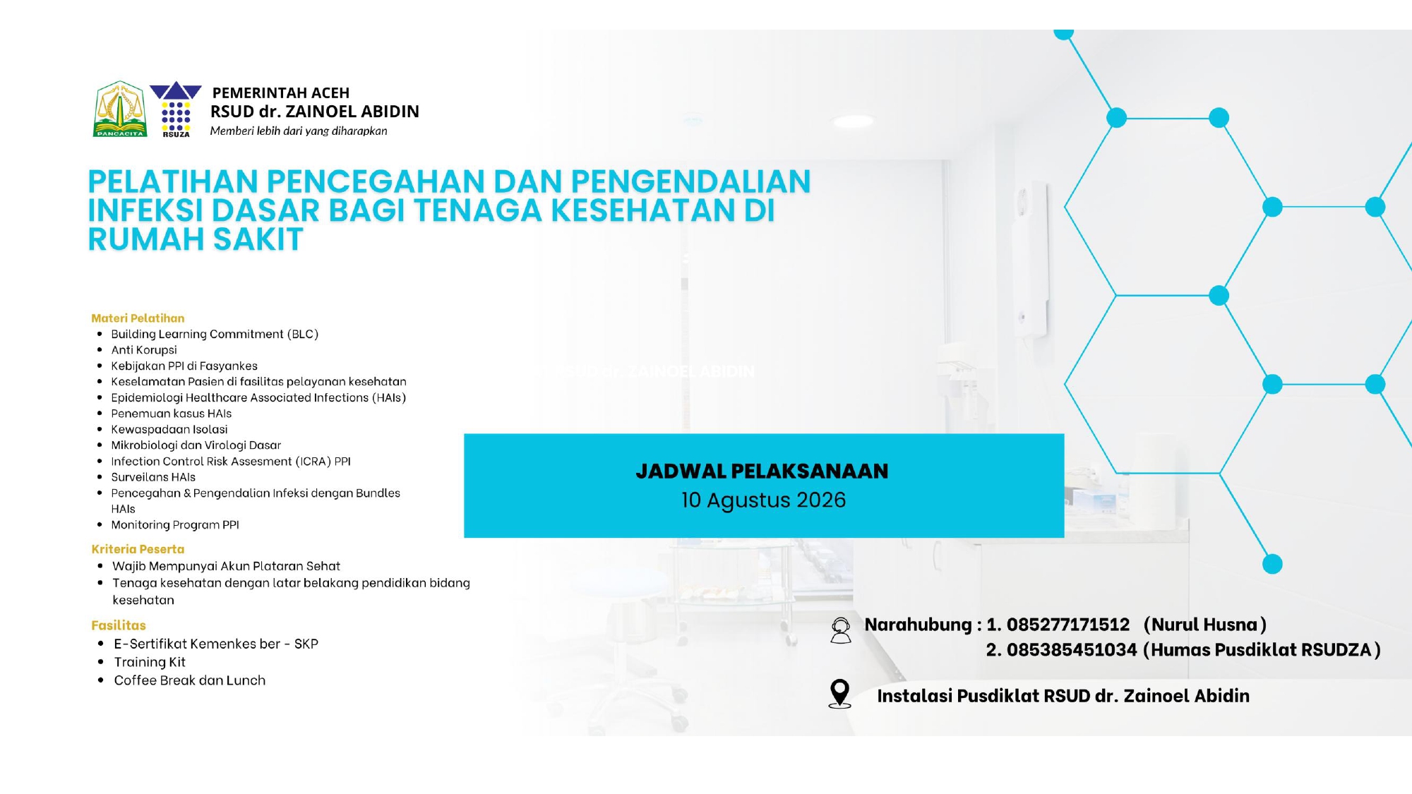 Pendidikan dan Pelatihan RSUDZA akan menyelenggarakan pelatihan yang telah